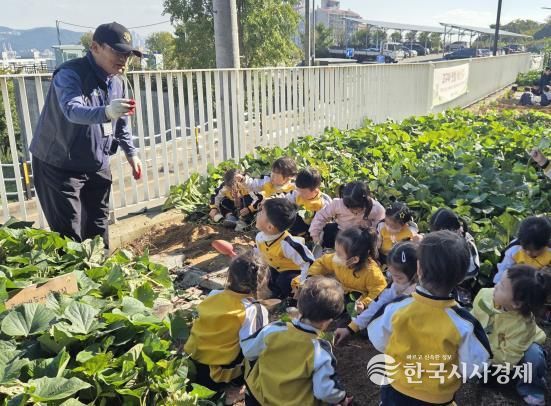 한국시사경제 김숙영 기자 | 부산시 영도구는 지난 10월 28일부터 31일까지 영도 조내기고구마역사기념관 체험마당 일원에서 관내 어린이집 및 유치원 원아들을 대상으로 고구마 수확체험을 운영했다.