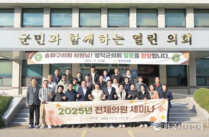 한국시사경제 이정이 기자 | 영덕군의회는 11월 3일, 자매도시인 송파구의회(의장 이혜숙) 연수 방문단을 맞이했다. 이번 방문은 지난 3월 대형 산불로 영덕군의 피해가 컸던 당시, 김성호 의장이 직접 송파구의회를 방문해 피해 상황을 설명하고 영덕 관광 활성화를 위해 각종 연수와 세미나를 영덕에서 개최해 줄 것을 요청한 것이 계기가 됐다.
