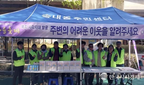 한국시사경제 문화팀 | 동두천시 송내동 행정복지센터와 송내동 지역사회보장협의체는 지난 2일 송내마을축제가 열린 메타세쿼이아길에서 복지 사각지대 발굴을 위한 거리 홍보 캠페인을 진행했다.
