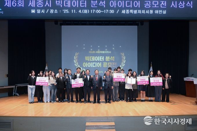 창의성, 우수성, 효과성, 실현·확장 가능성 등을 기준으로 공정하게 심사한 결과 ‘세종시 상가 데이터 분석을 통한 추천지수(SRS) 기반 상권 활성화 전략 제안’ 아이디어를 제안한 원민재 씨가 대상의 영예를 안았다.