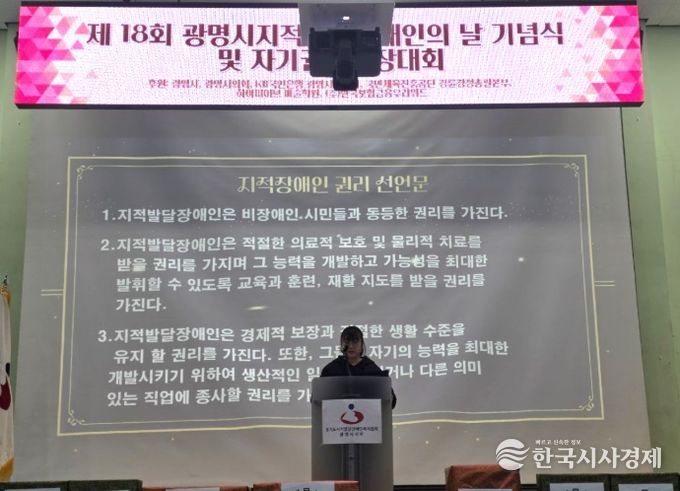 한국시사경제 문화팀 | 광명시는 발달장애인의 권리 증진과 자립, 사회참여를 촉진하기 위해 ‘제18회 광명시 지적발달장애인의 날 기념식’을 개최했다.