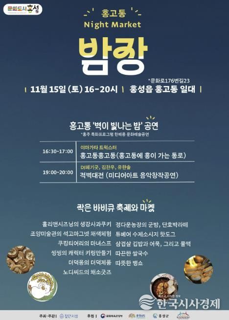 한국시사경제 오영주 기자 | 오는 15일 16시부터 20시까지 홍성읍 원도심 ‘홍고통’에서 제4회 골목이 살아나는 홍고통 Night Market 밤장이 열린다.
