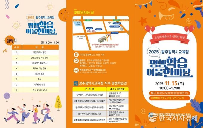한국시사경제 광주취재본부 | 광주시교육청금호평생교육관은 오는 15일 광주시교육청학생독립운동기념회관 야외 일원에서 시민 등을 대상으로 ‘2025 광주광역시교육청 평생학습 어울 한마당’을 개최한다.