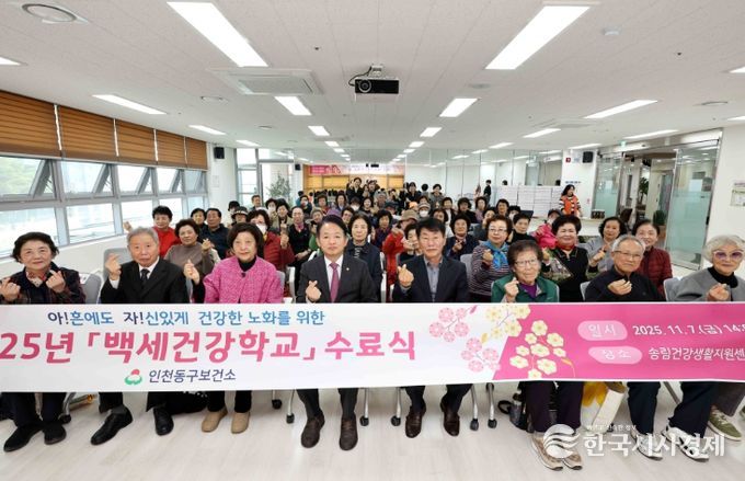 한국시사경제 윤광희 기자 | 인천 동구는 지난 7일 송림건강생활지원센터에서 ‘2025년 백세건강학교 수료식’을 개최했다고 밝혔다.