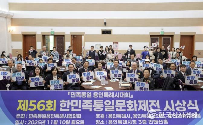 한국시사경제 이정이 기자 | 용인특례시는 10일 시청 컨벤션홀에서 민족통일 용인특례시협의회 주관으로 ‘민족통일 용인특례시대회와 제56회 한민족통일문화제전 시상식’이 열렸다고 밝혔다.