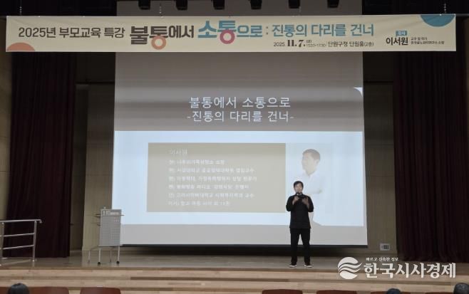 한국시사경제 권충현 기자 | 안산시는 단원구청 단원홀에서 ‘불통에서 소통으로: 진통의 다리를 건너’를 주제로 부모교육 특강을 진행했다고 11일 밝혔다.