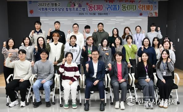 한국시사경제 사회팀 | `25년 11월 10일, 영통구는 영흥수목원에서 사회복지담당 공무원 힐링 프로그램, ‘동(洞)구(區)동(同)락(樂)’을 진행했다. 이 프로그램은 과중한 업무로 인한 정서적 피로와 스트레스를 해소하고 직원들의 심신 회복을 지원하기 위해 마련됐으며, 구/동 직원 30명이 참여했다.