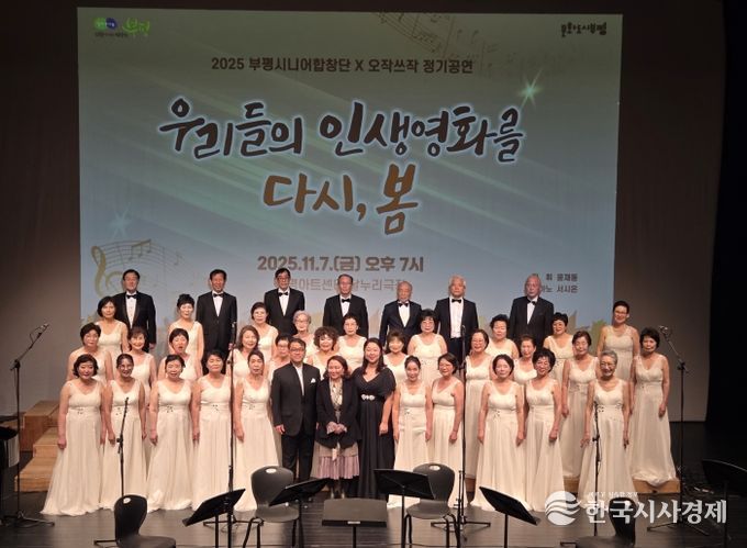 한국시사경제 문화팀 | 부평구 산곡노인문화센터는 지난 7일 부평아트센터 달누리극장에서 ‘제4회 부평시니어합창단X오작쓰작 정기공연-우리들의 인생영화를 다시 봄’을 개최했다.