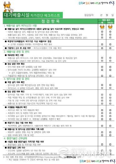 한국시사경제 사회팀 | 인천 서구는 관내 환경오염물질 배출사업장의 자율적인 환경관리 역량을 강화하고, 환경오염 사고를 예방하기 위해 '자가진단 체크리스트'를 배부한다고 밝혔다.
