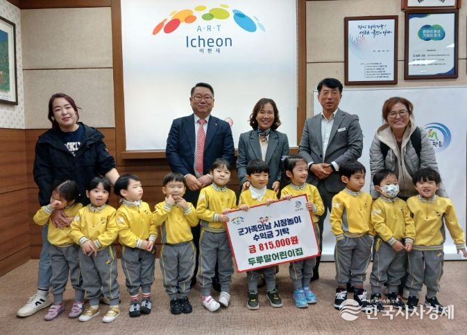 한국시사경제 기동취재팀 | 이천시 장호원읍 두루말어린이집은 11월 11일, 어린이들과 함께 장호원읍행정복지센터에 방문해 군가족의 날 아나바다 시장놀이 행사의 수익금 815,000원을 전달했다.
