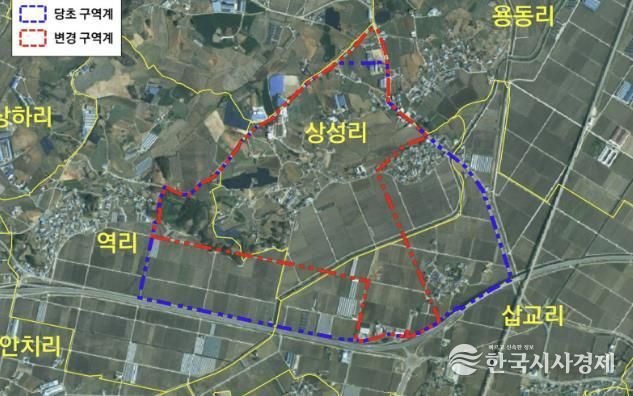 이번 조정은 사업구역 변경 사항을 반영한 것으로, 2023년 10월 23일 지정된 삽교읍 삽교리 일원 1177필지 166만6644㎡ 중 삽교리·상성리·역리 일원 412필지 67만5016㎡는 해제하고 용동리 7필지 947㎡는 추가 지정됐다.
