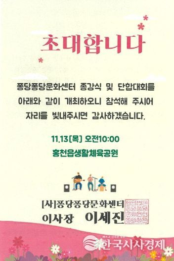 한국시사경제 권충언 기자 | 홍천군은 11월 13일, 홍천읍 생활체육공원에서 '제4회 퐁당퐁당 문화센터 종강식 및 단합대회'를 개최한다고 밝혔다.