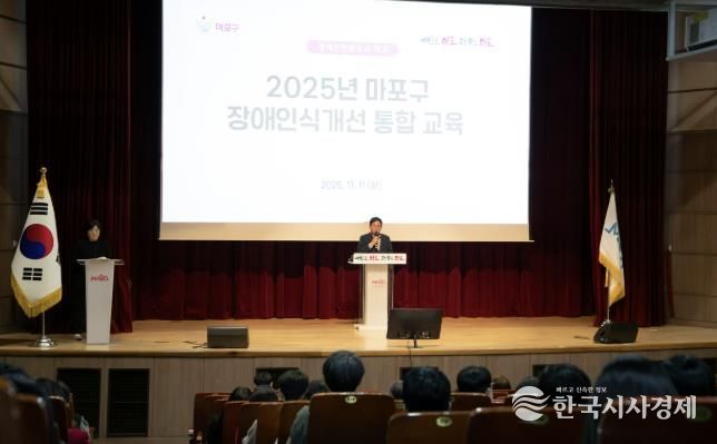 한국시사경제 노승선 기자 | 마포구는 11월 11일 오후, 구청 대강당에서 마포구 소속 직원과 근로자 약 500여 명을 대상으로 장애인식개선 통합교육을 진행했다.