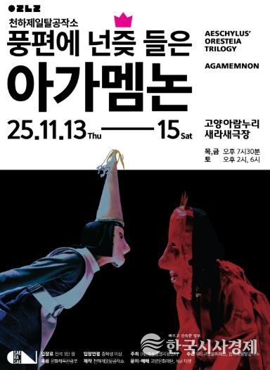한국시사경제 윤광희 기자 | (재)고양문화재단은 오는 11월 13일부터 15일까지 3일간, 고양아람누리 새라새극장에서 천하제일탈공작소의 탈춤극 〈풍편에 넌즞 들은 아가멤논〉을 선보인다.