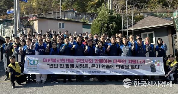 한국시사경제 충북취재본부 | 대한불교천태종 구인사 총무원과 사회복지법인 대한불교천태종복지재단이 주최하고, 단양노인복지관이 주관한 ‘따뜻한 겨울나기’ '연탄 한 장에 사랑을, 온기 한 줌에 희망을 담다' 연탄 나눔 행사가 11월 12일 충북 단양군 단성면 일대에서 진행됐다.