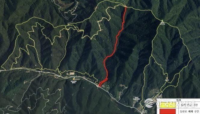 임시 폐쇄 구간은 총 약 2.06km로, 물안이골 입구에서 송한재 임도 방향으로 이어지는 등산로 구간이다. 이 구간은 노후된 로프난간과 부식된 목계단 등으로 탐방객 안전사고 위험이 높다.