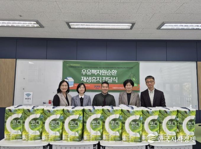 한국시사경제 경기취재본부 | 지난 11월 12일, 시흥시장곡종합사회복지관에서 환경과 나눔을 담은 재생 휴지 360개 가 전달됐다. 이날 전달된 재생 휴지는 장곡동 내 시립어린이집장곡지역, 시립어린이집장현지역, 그리고 마을문화교육공동체 ‘담다’가 지난 7월부터 10월까지 4개월간 종이팩 교환사업을 통해 마련한 것으로, 지역 취약계층에게 지원될 예정이다.