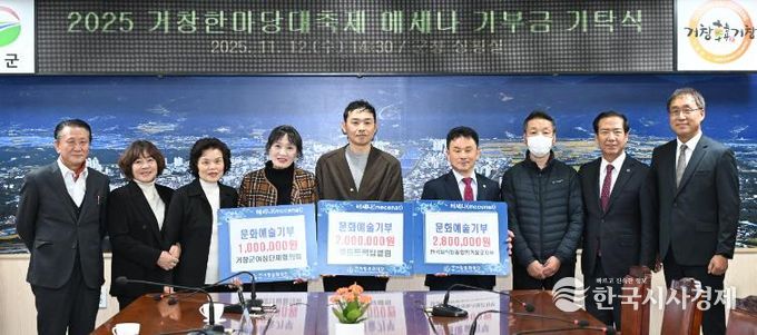한국시사경제 경남취재본부 | 거창문화재단은 지난 12일 ‘2025 거창한마당대축제’ 운영 과정에서 참여 단체와 업체들이 마련한 수익금을 메세나 기부금으로 전달받았다.