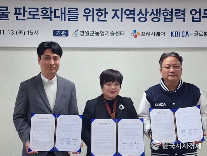 한국시사경제 권충언 기자 | 영월군농업기술센터는 2025년 11월 13일 목요일 오후 3시, 영월군농업기술센터 2층 회의실에서 CJ프레시웨이, KOICA글로벌인재교육원과 함께 지역상생협력 업무협약을 체결했다.