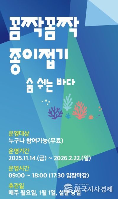 이종후 도립미술관장은 “종이접기는 두뇌 발달과 집중력 향상에 도움이 되는 활동으로, 이번 프로그램을 통해 제주의 환경 문제를 함께 생각하고 공존의 가치를 느낄 수 있기를 바란다”고 말했다.