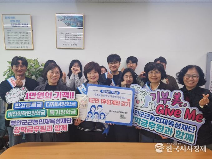 한국시사경제 김숙영 기자 | 부안군 지역경제과는 부안군근농인재육성재단이 추진하는 ‘장학금 1군민 1후원계좌갖기 릴레이 캠페인’에 동참하며 지역 인재 육성과 나눔 문화 확산에 함께했다.