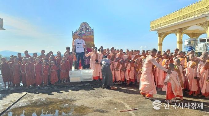 한국시사경제 권충언 기자 | 광양시는 시 홍보대사이자 국제환경운동가인 ‘맨발의 사나이’ 조승환 씨가 지난 11월 13일 미얀마 고마다 사원(Gomada Temple) 에서 열린 식수 우물 준공식에 초청돼 ‘얼음 위 맨발로 서 있기’ 5시간 30분을 기록하며 세계신기록을 경신했다고 밝혔다.