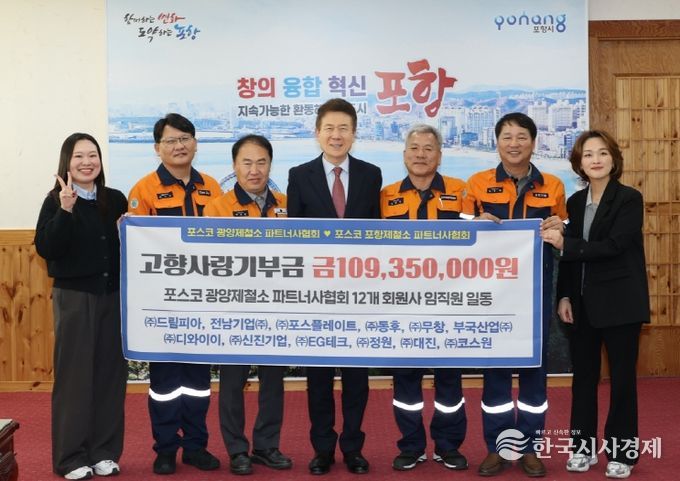 한국시사경제 노승선 기자 | 포항시가 14일 광양제철소 파트너사협회와 소속 12개 회원사로부터 총 1억 1천여만 원의 고향사랑기부금을 기탁받았다.