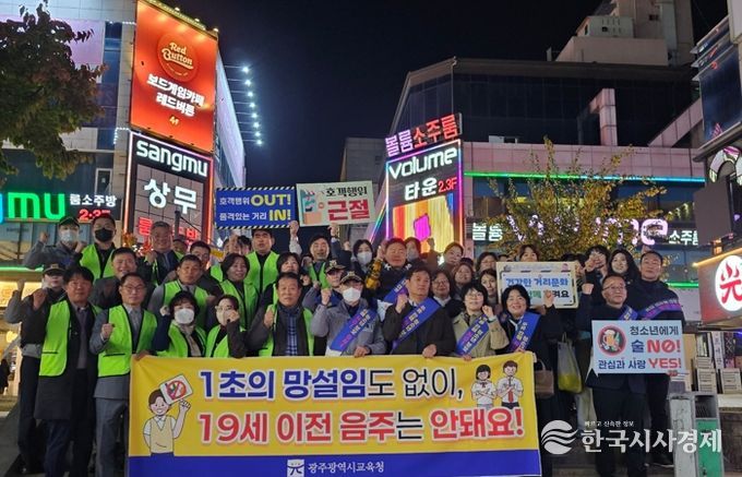한국시사경제 광주취재본부 | 광주시교육청은 지난 14일 상무지구 일대에서 광주광역시, 광주경찰, 서구, 한국외식업중앙회 광주지회, 광주청소년유해환경감시단 등과 함께 수능 이후 청소년 보호를 위한 현장 캠페인을 전개했다.
