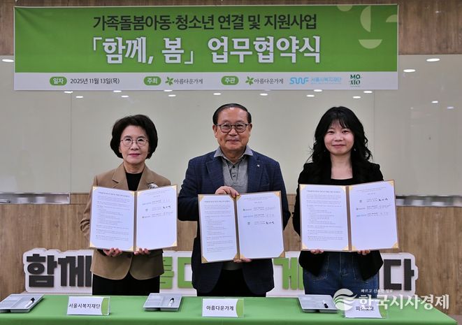 재단은 13일 재단법인 아름다운가게, 사단법인 피스모모와 함께 ‘가족돌봄아동‧청소년 연결 및 지원사업 : 함께, 봄’ 업무협약(MOU)을 체결했다.