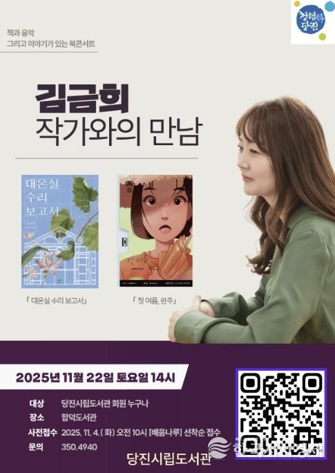 한국시사경제 충남취재본부 | 당진시립도서관은 합덕도서관에서 오는 22일 오후 2시, 섬세한 문체와 따뜻한 서사로 많은 독자의 사랑을 받는 소설가 김금희 작가를 초청해 북콘서트를 개최한다.