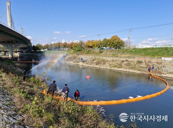 한국시사경제 사회팀 | 광주 광산구가 18일 풍영정천 일원에서 ‘수질오염사고 민관 합동 방제훈련’을 진행했다.