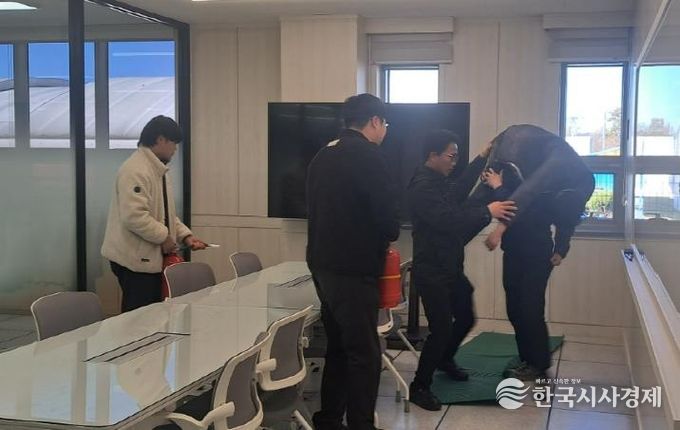 훈련은 자위소방대 편성표에 따라 진압반, 구조구급반, 대피유도반으로 직원들을 분할 편성하여 진행됐으며, 청내 방송을 통한 화재전파, 소화기·소화전을 사용한 화재진화, 부상자 응급처치 및 후송, 안전한 피난 유도 등 실제 화재상황을 가정하여 진행됐다.