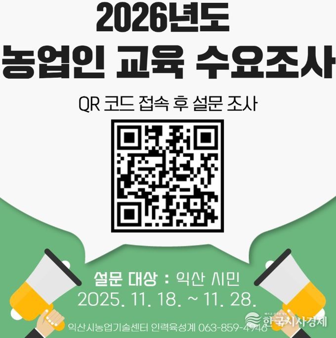 한국시사경제 전북취재본부 | 익산시가 농업인의 실제 필요를 교육 정책에 반영하기 위해 '2026년도 농업인 교육 수요 조사'를 시작했다.