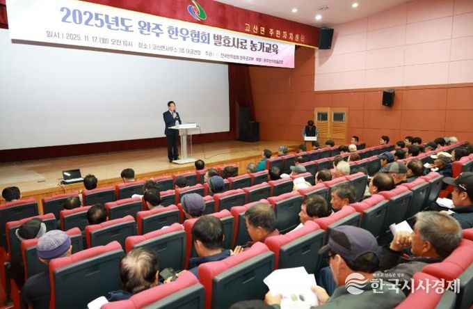 한국시사경제 김숙영 기자 | 완주군이 최근 고산면 행정복지센터에서 한우농가 200여 명이 참석한 가운데 발효사료 활용 설명회를 개최하고, 급여 방법과 품질개선 효과 등 현장에서 필요한 정보를 제공하며 한우산업 경쟁력 강화에 나섰다.