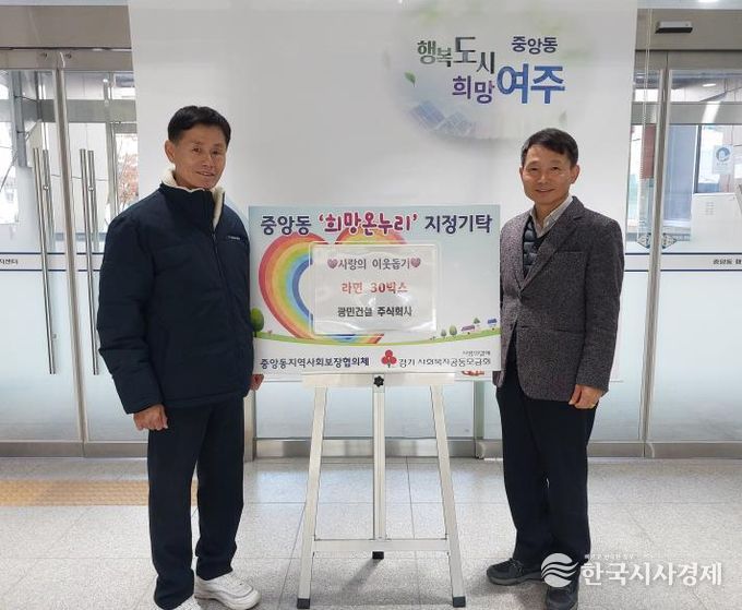 한국시사경제 기동취재팀 | 여주시 중앙동 소재 광민건설㈜은 지난 18일 동 행정복지센터를 방문해 관내 저소득 취약계층을 위한 라면 30박스를 기탁했다.