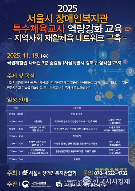 강윤규 국립재활원장은 “특수체육교사는 지역 장애인의 건강 증진을 이끄는 핵심 인력이며, 국립재활원은 앞으로도 현장 중심의 역량 강화를 위해 지역사회와 협력해 지속 가능한 재활체육 모델을 확산하겠다”라고 밝혔다.