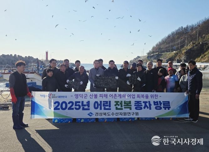 한국시사경제 사회팀 | 경상북도 수산자원연구원은 산불 피해를 본 영덕군 연안 생태계의 회복과 지역 어민들의 소득 증대를 위해 19일 피해지역 5개 어촌계(7개 어촌마을)에 건강한 어린 전복 15만 마리를 무상으로 방류했다.