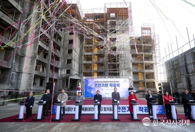 한국시사경제 충북취재본부 | 제천시는 19일 도심 속 흉물로 장기간 방치된 건축물(광진아파트)의 철거공사 안전기원 착공식을 개최했다.