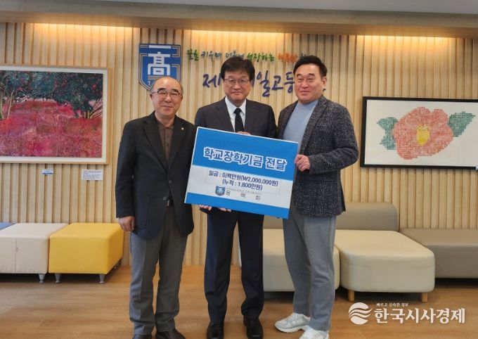 한국시사경제 노승선 기자 | 제주도교육청 제주제일고등학교는 18일 20회기 회장단 모임인 용맥회가 학교발전기금 200만 원을 기탁했다고 밝혔다.