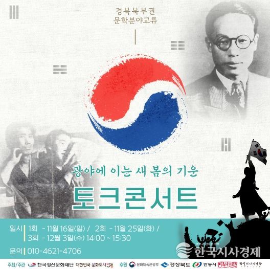 “저항의 불꽃과 자유의 언어”를 주 내용으로 진행되는 토크콘서트에는 국립경국대학교 사학과 강윤정 교수, 국민문화연구소 김창덕 회장, 예문관 박성진 대표가 패널로 참여하며, 중간에는 다채로운 공연도 선보일 예정이다.