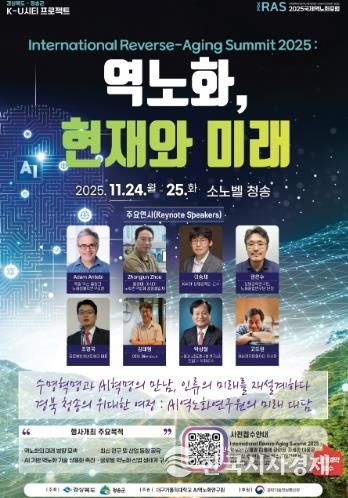 둘째 날에는 ‘AI for Reverse-Aging’을 주제로 ▲AI 기반 역노화 천연물 분석 ▲디지털 헬스케어 ▲세포 역노화 기술 ▲역노화 산업단지 조성 전략 등 학술·산업·정책이 결합 된 심층 세션이 진행된다.