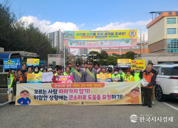한국시사경제 문화팀 | 청주시는 20일 청원구 주중초등학교 일원에서 어린이 등하굣길 안전 확보를 위한 ‘어린이 약취·유인 예방 캠페인’을 실시했다.