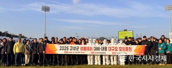 한국시사경제 윤광희 기자 | 고성군은 군민의 생명과 안전을 지키기 위해 2025년 11월 20일 고성군종합운동장에서 ‘2025년 생물테러 대응 대규모 모의훈련’을 성공적으로 실시했다고 밝혔다.