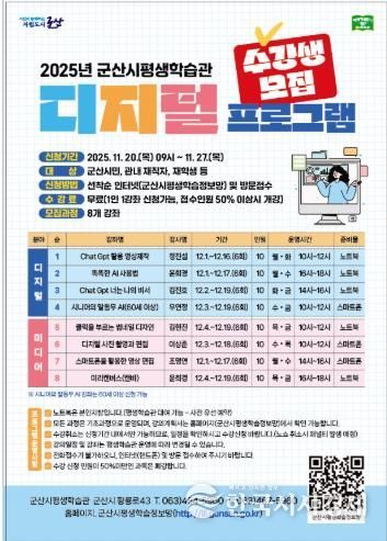 한국시사경제 전북취재본부 | 군산시평생학습관이 디지털 대전환 시대에 발맞춰 시민들의 정보 활용 능력과 디지털 기기 활용 역량 강화를 위한 ‘디지털 프로그램’ 수강생을 모집한다.