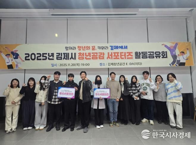 한국시사경제 김숙영 기자 | 김제시는 지난 20일, 김제 청년공간 E :DA(이다)에서'2025년 청년 서포터즈 활동공유회'를 개최하고, 올해 서포터즈가 추진한 정책 제안과 다양한 활동을 공유했다고 밝혔다.