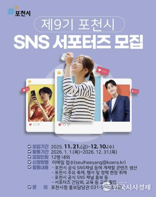 한국시사경제 경기북부취재본부 | 포천시는 시민의 시선으로 시정과 지역 소식을 생생하게 전달할 ‘2026년 제9기 포천시 누리소통망(SNS) 서포터즈’를 오는 12월 10일까지 공개 모집한다.
