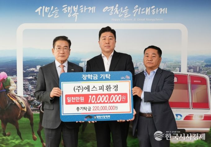 한국시사경제 경북취재본부 | 영천시는 21일 ㈜에스피환경에서 장학금 1,000만원을 영천시장학회에 기탁했다고 밝혔다.