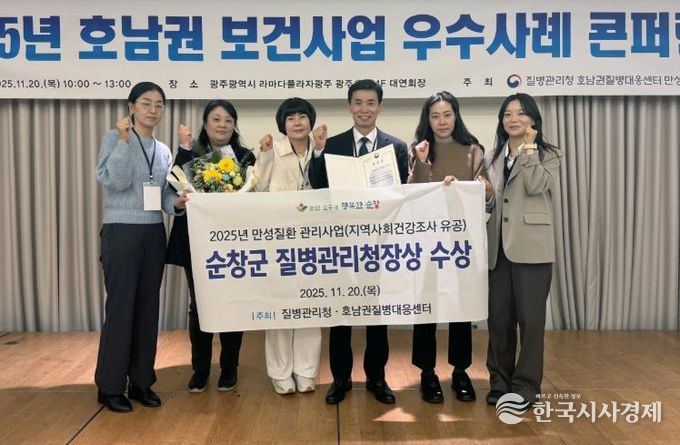 한국시사경제 전북취재본부 | 순창군이 지난 20일 2025년 호남권 만성질환 관리사업 중 ‘지역사회건강조사’ 분야에서 우수 유공기관으로 선정되어 질병관리청장 표창을 수상했다.