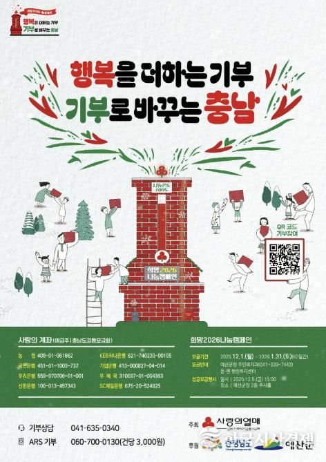 또한 12월 5일 군청 추사홀에서는 직접 성금 모금에 참여할 수 있는 ‘희망2026 나눔캠페인’ 행사도 개최할 예정이다.