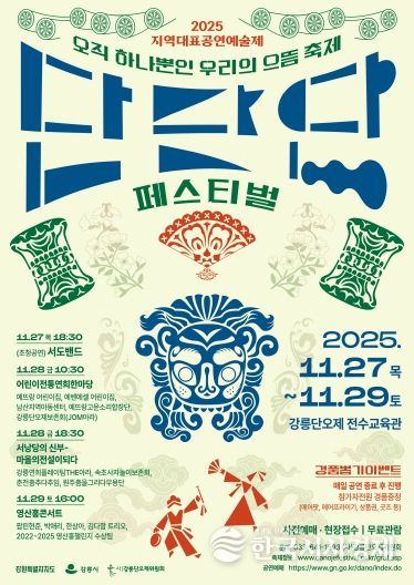 한국시사경제 이정이 기자 | (사)강릉단오제위원회는 오는 11월 27일부터 29일까지 강릉단오제전수교육관 일원에서 ‘2025 단단단페스티벌’을 개최한다고 밝혔다. ‘단단단(端單團)’은 으뜸 단(端), 오직 하나 단(單), 우리 단(團)을 뜻하며 “오직 하나뿐인 우리의 으뜸 축제”를 의미한다.